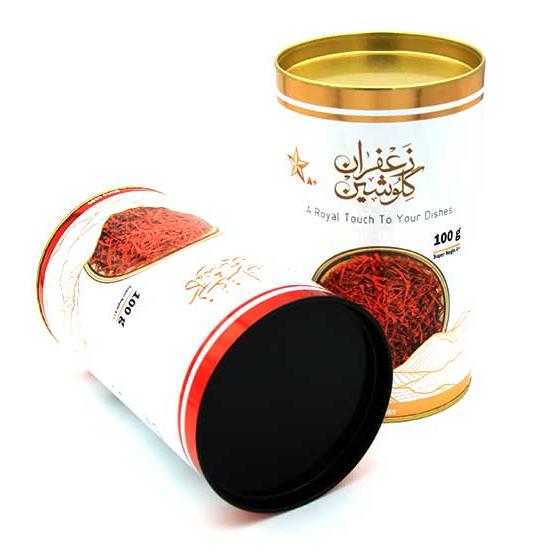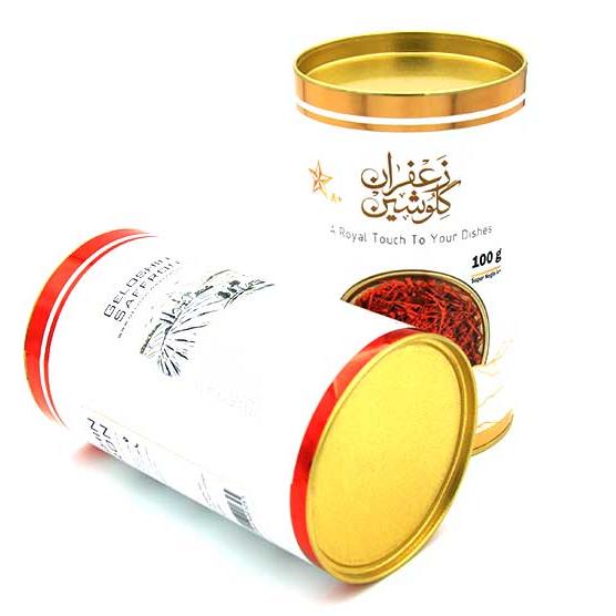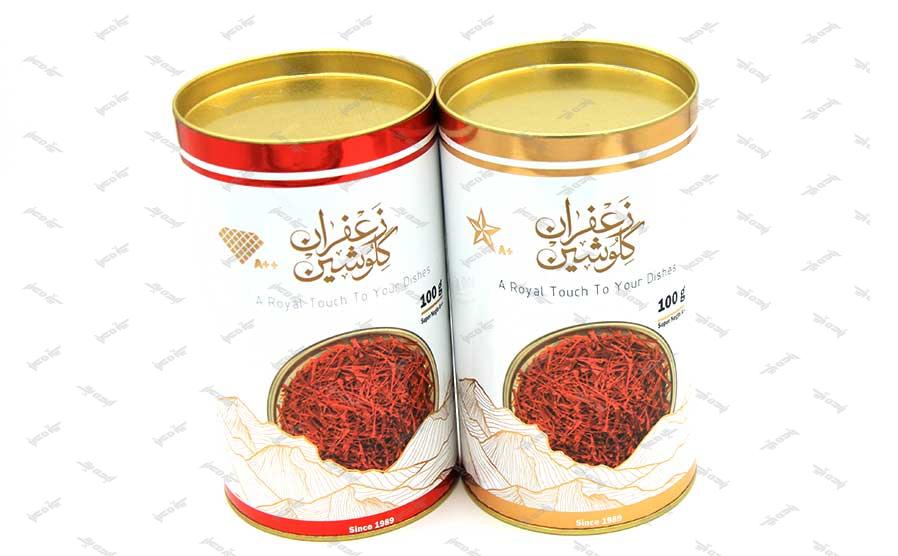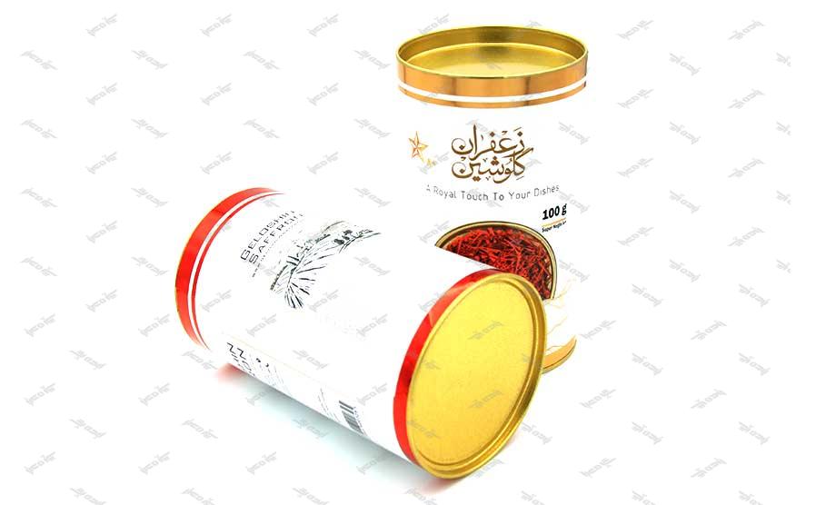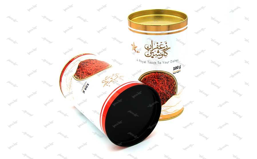 بسته بندی زعفران در حجم 100 گرم در قوطی مقوایی، قطر 99 میلیمتر ارتفاع 180 میلیمتر قابل بسته بندی می باشد هرچند جهت انتخاب سایز مناسب، می بایست حجم گیری متناسب با خود محصول انجام گردد.